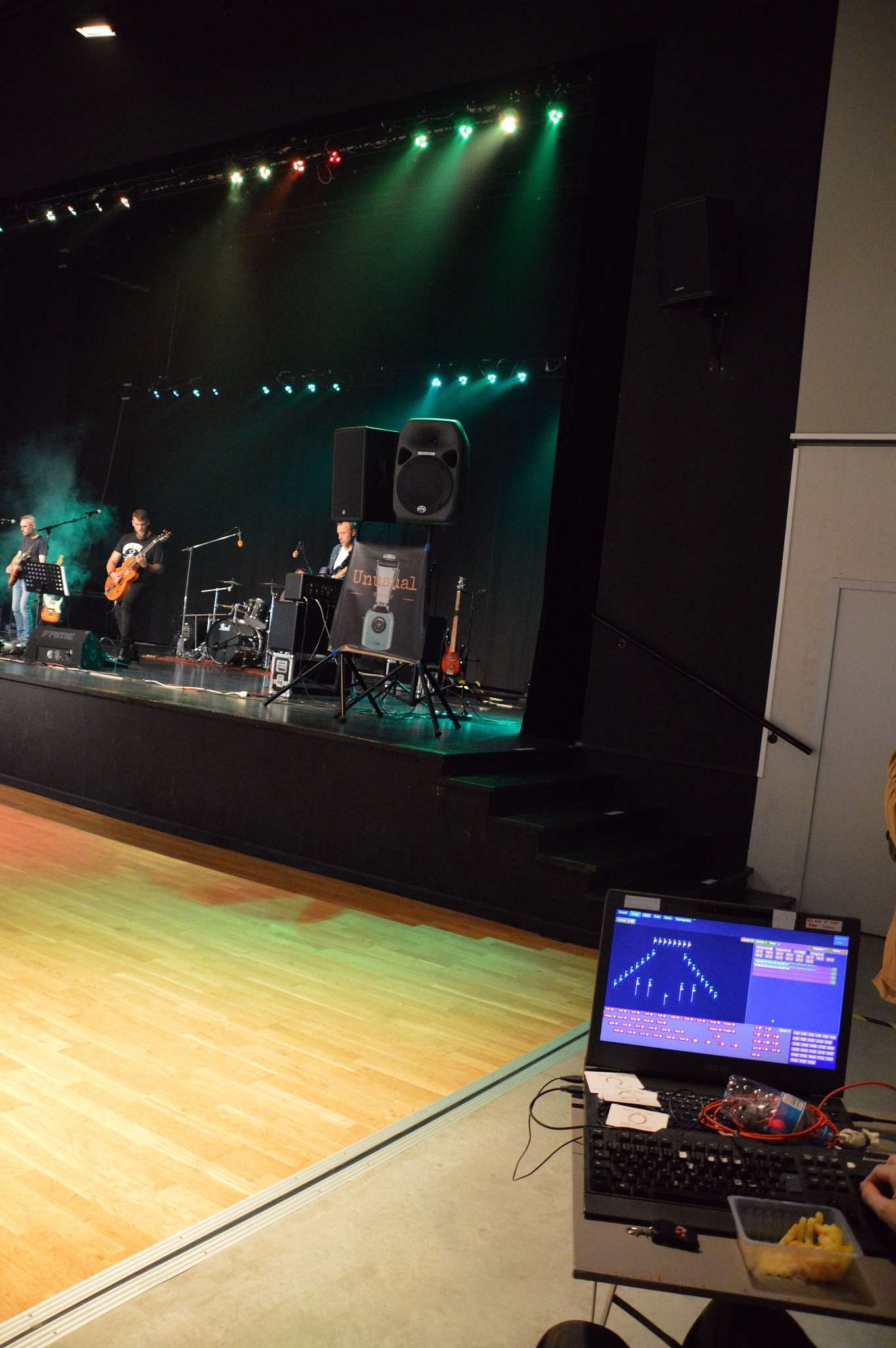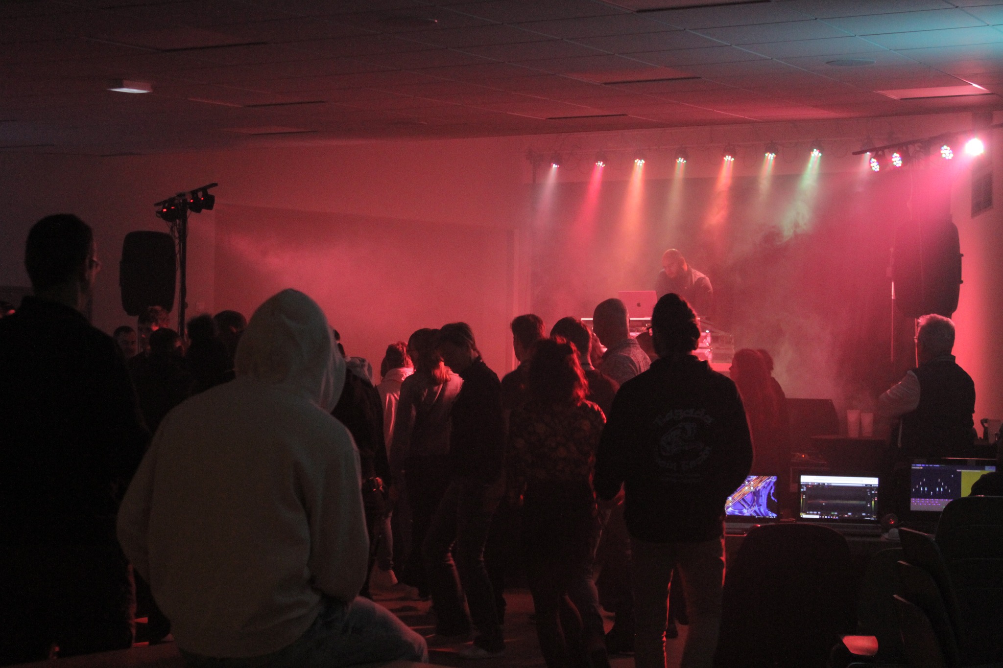 La soirée avec le Valliid-DMX confirme qu'il est pratique et réactif, je pense que le public se souviendra des coups de stroboscope abusé durant les changements de couleur, accompagné par de petites animation "étoilées" pendant que les lyres bougent 😃 les limites du matériel n'ont pas étaient atteintes :3